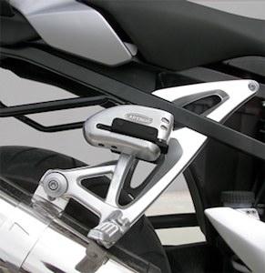 Dans le meilleur des cas, votre moto est équipée d'un espace sous-selle suffisamment grand pour y ranger un bloque-disque, d'un top-case ou de sacoches.